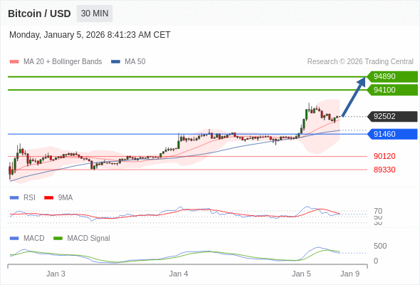 كسر المقاومة 94100 والثبات أعلى منها على الأقل بشمعة 4 ساعات ستدفع السعر نحو المقاومة التالية