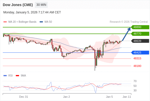 DOWJONES (US30) (CME) تداول يومي: الاتجاه العام صاعد