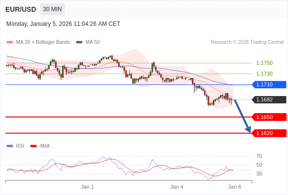 EUR/USD تداول يومي:الاتجاه العام هابط