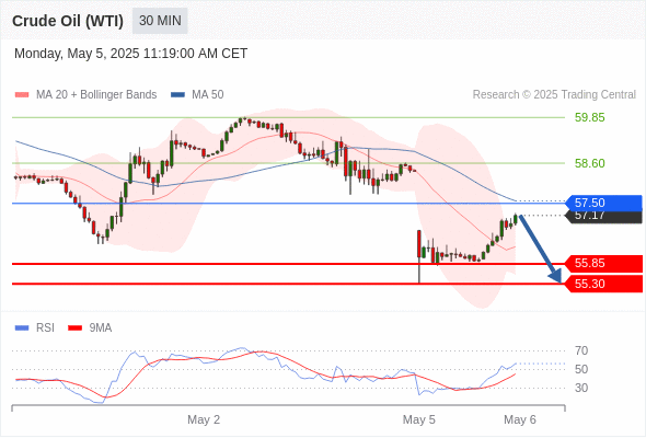 CRUDE OIL (WTI) تداول يومي: الاتجاه العام هابط