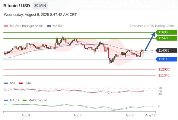 كسر المقاومة 115400والثبات أعلى منها على الأقل بشمعة 4 ساعات ستدفع السعر نحو المقاومة التالية 116060