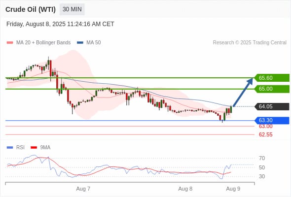 كسر المقاومة. 65.00والثبات أعلى منها على الأقل بشمعة 4 ساعات ستدفع السعر نحو المقاومة التالية 65.60