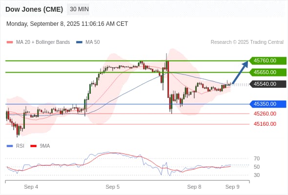 DOWJONES (US30) (CME) تداول يومي: الاتجاه العام صاعد