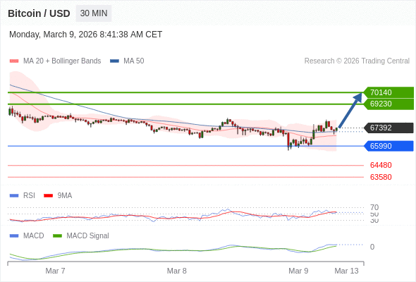 كسر المقاومة 69230 والثبات أعلى منها على الأقل بشمعة 4 ساعات ستدفع السعر نحو المقاومة التالية