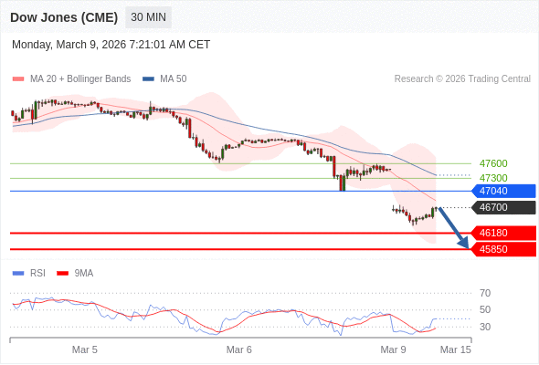 DOWJONES (US30) (CME) تداول يومي: الاتجاه العام هابط