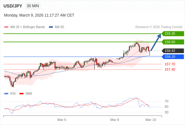 كسر المقاومة 158.90 والثبات أعلى منها على الأقل بشمعة 4 ساعات ستدفع السعر نحو المقاومة التالية