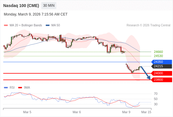NASDAQ (US100) (CME) تداول يومي: الاتجاه العام هابط