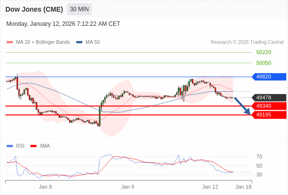 DOWJONES (US30) (CME) تداول يومي: الاتجاه العام هابط