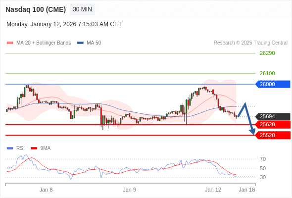 NASDAQ (US100) (CME) تداول يومي: الاتجاه العام هابط