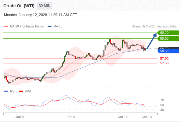 CRUDE OIL (WTI) تداول يومي: الاتجاه العام صاعد