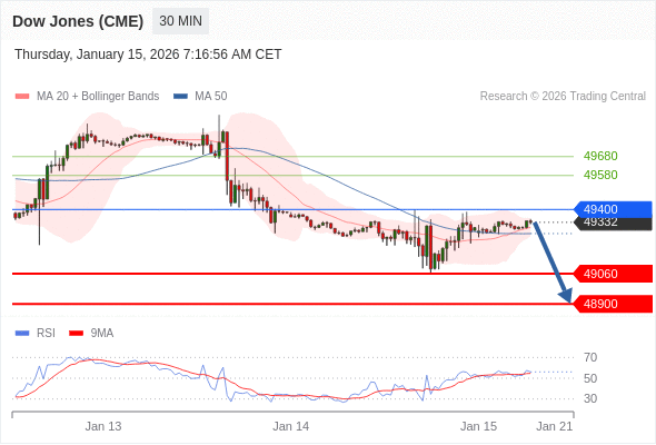 DOWJONES (US30) (CME) تداول يومي: الاتجاه العام هابط
