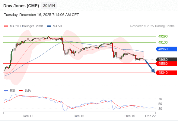 DOWJONES (US30) (CME) تداول يومي: الاتجاه العام هابط