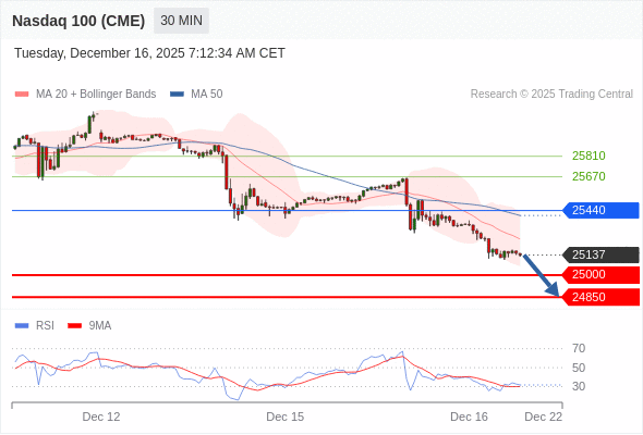 NASDAQ (US100) (CME) تداول يومي: الاتجاه العام هابط