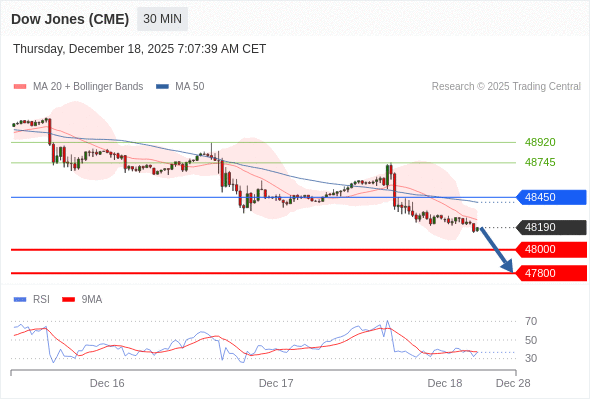 DOWJONES (US30) (CME) تداول يومي: الاتجاه العام هابط