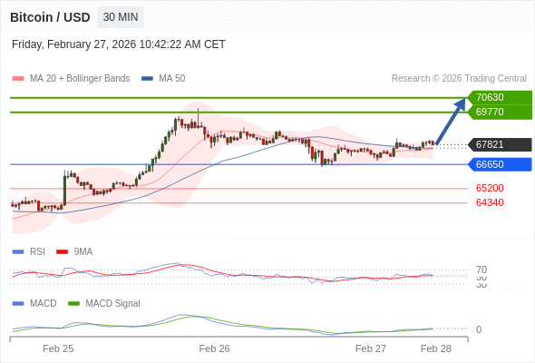 كسر المقاومة 69770 والثبات أعلى منها على الأقل بشمعة 4 ساعات ستدفع السعر نحو المقاومة التالية