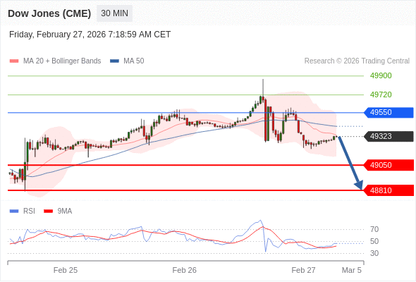 DOWJONES (US30) (CME) تداول يومي: الاتجاه العام هابط