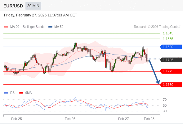 كسر الدعم 1.1775 والثبات أدنى منه على الأقل بشمعة 4 ساعات سيدفع السعر نحو الدعم التالية
