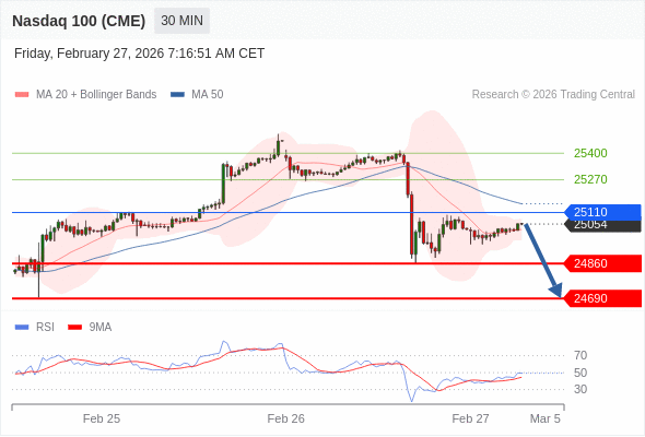 NASDAQ (US100) (CME) تداول يومي: الاتجاه العام هابط