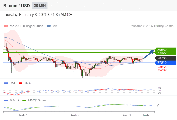 كسر المقاومة 79980 والثبات أعلى منها على الأقل بشمعة 4 ساعات ستدفع السعر نحو المقاومة التالية