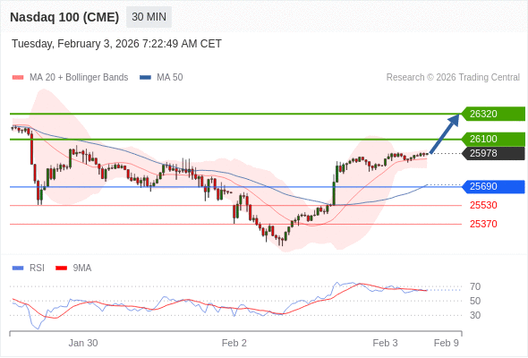 NASDAQ (US100) (CME) تداول يومي: الاتجاه العام صاعد