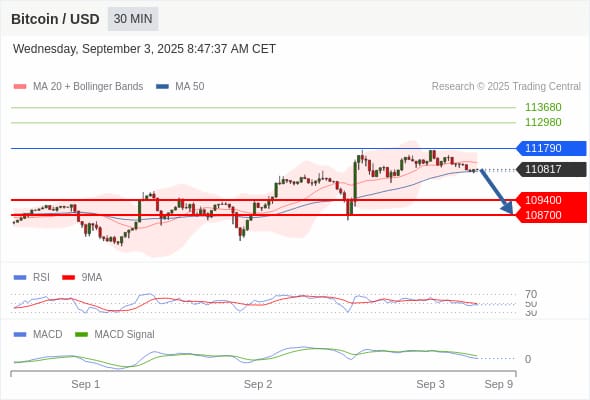 كسر الدعم 109400 والثبات أدنى منه على الأقل بشمعة 4 ساعات ستدفع السعر نحو الدعم التالية