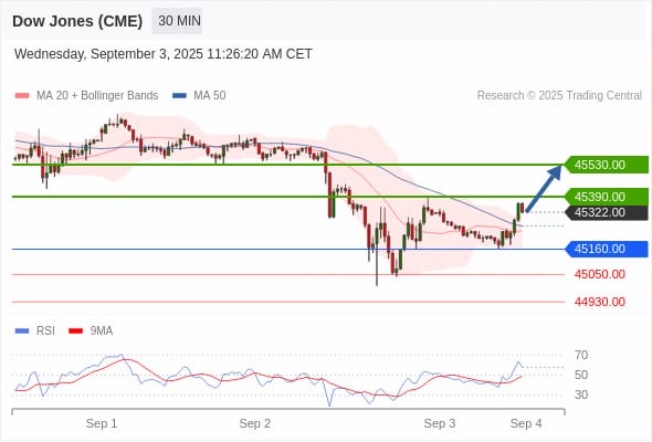 DOWJONES (US30) (CME) تداول يومي: الاتجاه العام صاعد