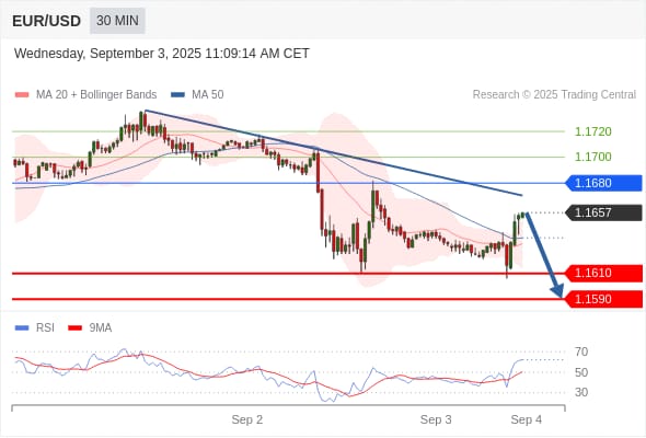 كسر المقاومة. 1.1700والثبات أعلى منها على الأقل بشمعة 4 ساعات ستدفع السعر نحو المقاومة التالية