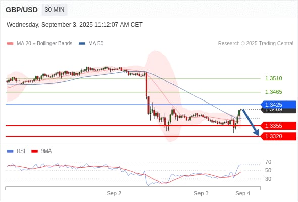 كسر المقاومة 1.3465والثبات أعلى منها على الأقل بشمعة 4 ساعات ستدفع السعر نحو المقاومة التالية